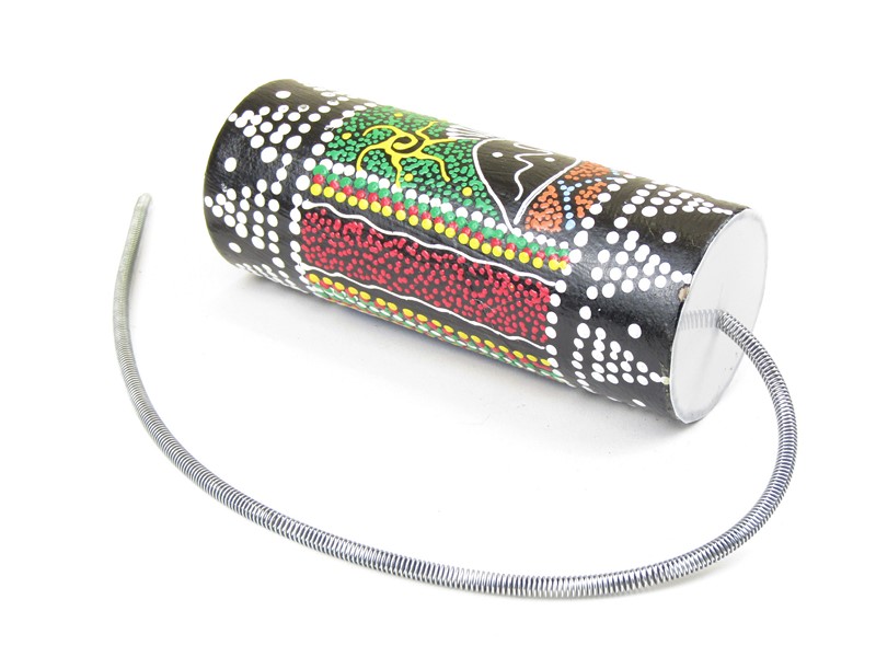 Netradiční originální hudební nástroj byl ručně vyrobený v Indonésii. Má tvar válce, který je z tvrdého kartónu, namalovaného na černo. Horní část válce je pěkně pomalovaná stylem aboriginců, barevným tečkováním, v určitých tvarech. Jedná strana válce je otevřená a druhá je uzavřena plastovou blánou, ke které je ve středu napojená kovova pružina.