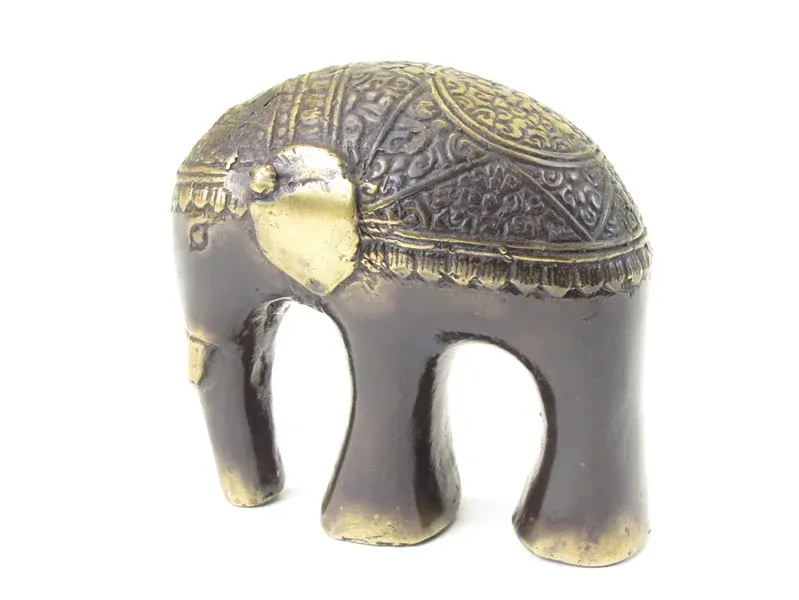 Originální moderní kovový slon byl vyroben v Indonésii. Je vyroben ze slitiny kovu, zvané bronze. Barva kovu je hnědá. Místy je vyleštěn do barvy zlaté. Na hlavě a zádech je krásně zdobený rytím. Chobot slona směřuje dolů pro zdraví.