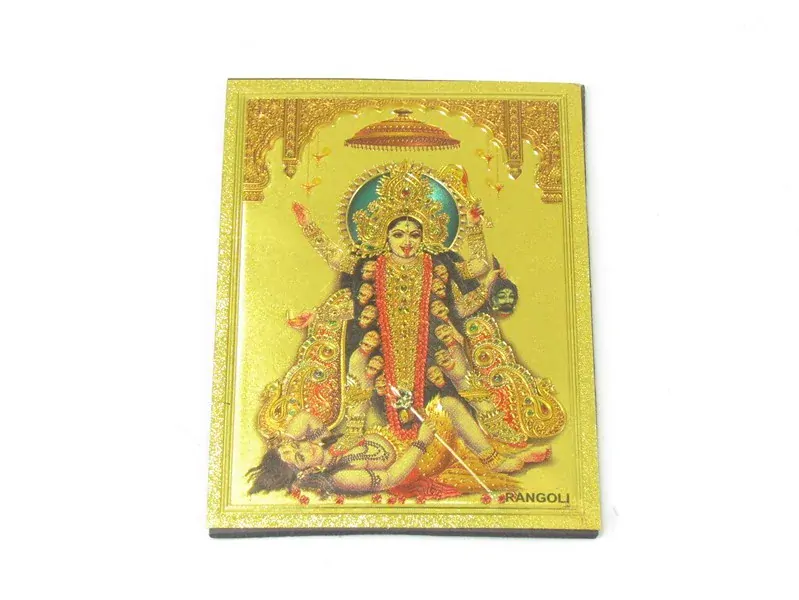 Krásné zpracování magnetu s vyobrazením hinduistické bohyně Kálí bylo vyrobeno v Indii. Magnet je z přední strany polepen obrázkem ve zlaté barvě s vyobrazením bohyně. Zadní strany magnetky je černá.
