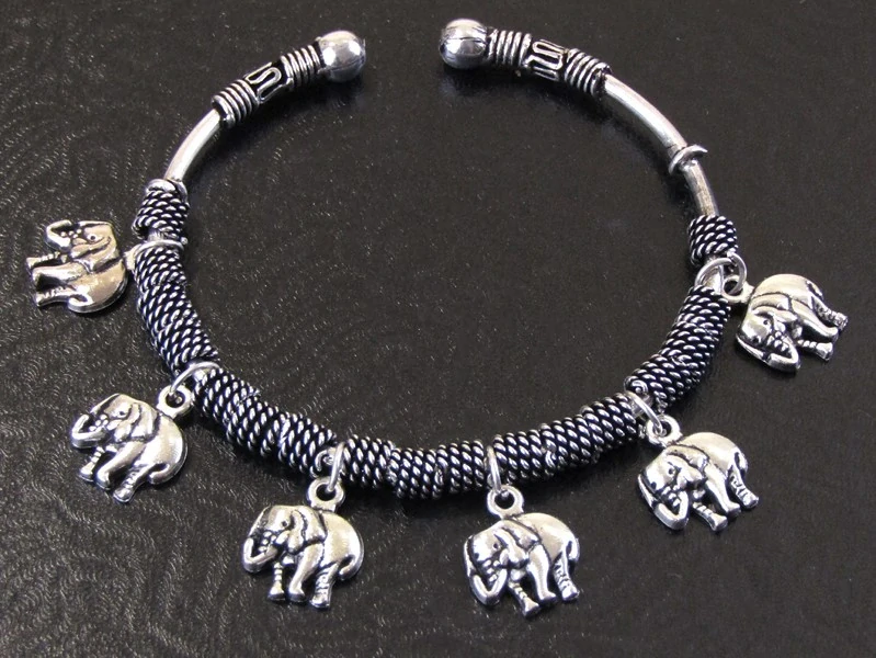 Náramek z bílého kovu se slony