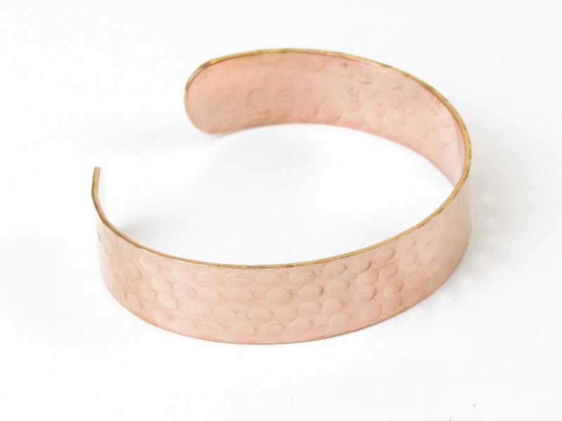 Náramek z Indie je vyroben z mědi. Horní strana náramku je pěkně zdobená ručním tepáním ve tvaru malinkých oválků.