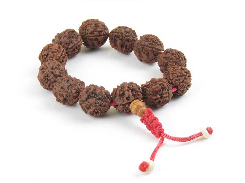 Z tulsi rudrakši, semínka posvátného Buddhova stromu, je vyroben náramek o 12 kuličkách. Jde o tzv. zmenšenou málu - modlitební korále. Náramek je zakončen čevenou viskózou. Šňůrka je na koncích doplněna malými korálky z bílé kosti.