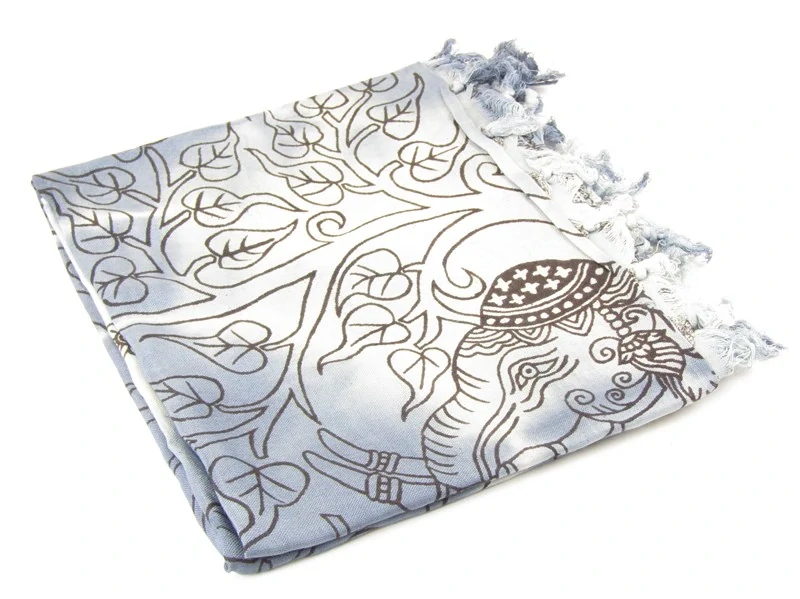 Origininální šál, jehož popularita a obliba stále vzrůstá, byl vyroben v Indii z velice jemné a na dotek příjemné viskózy. Vyroben je technikou batikování. Barva je modrá s bílou. Pareo je po celé ploše doplněné černým tiskem s motivem slonů. Spodní část šálu zdobí střapce.