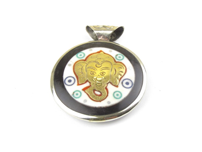 Přívěšek z kosti a kovu s hlavou Ganéše