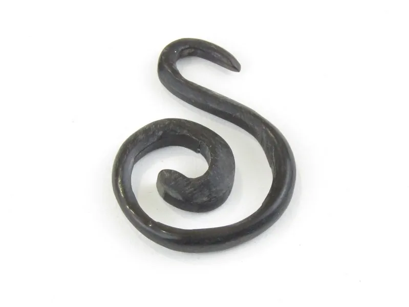 Hladký roztahovák do uší byl vyrobený v Indii z rohoviny. Barva je černá. Tvar roztahováku je spirálka. Postupně směrem nahoru se spirála rozšiřuje. Spirála pokračuje směrem nahoru v zatočeném tvaru do písmene S.