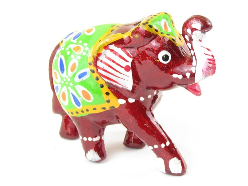 Soška červeného slona byla vyrobena v Indii z epoxidové pryskyřice. Chobot slona směřuje nahoru pro štěstí. Je velice pěkně barevně ručně pomalován.