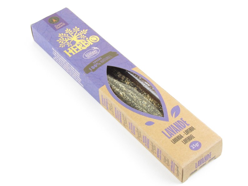 Přírodní vonné tyčinky, velice zajímavého vzhledu, s vůní oblíbené levandule, byly ručně vyrobeny v Indii. Vzhled těchto vonných tyčinek značky Herbio zaujme hustě nanesenou vonnou směsí na bambusové dřívko. Vonná směs se skládá z uhlí z kokosových skořápek, benzoinové pryskyřice, glutinózy z litsei a oleje z levandule. Díky větší hmotě na bambusové štěpce se déle zapalují. Doporučuji nechat tyčinku volně dýmit ve vodorovné pozici cca 10 minut a poté uhasit. Není nutné , aby tyčinka vyhořela celá.